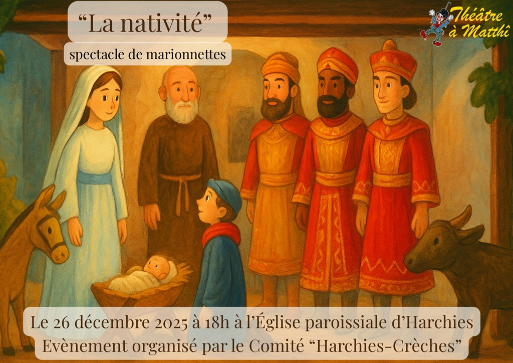 Harchies : spectacle de marionnettes + Ajouter à mon Agenda Google + iCal / Outlook export Date 26 Déc 2025 Heure 18 h 00 min Lieu Église Sainte-Vierge (Harchies) UP de Beloeil-Bernissart Catégorie Spectacle Partagez cet événement