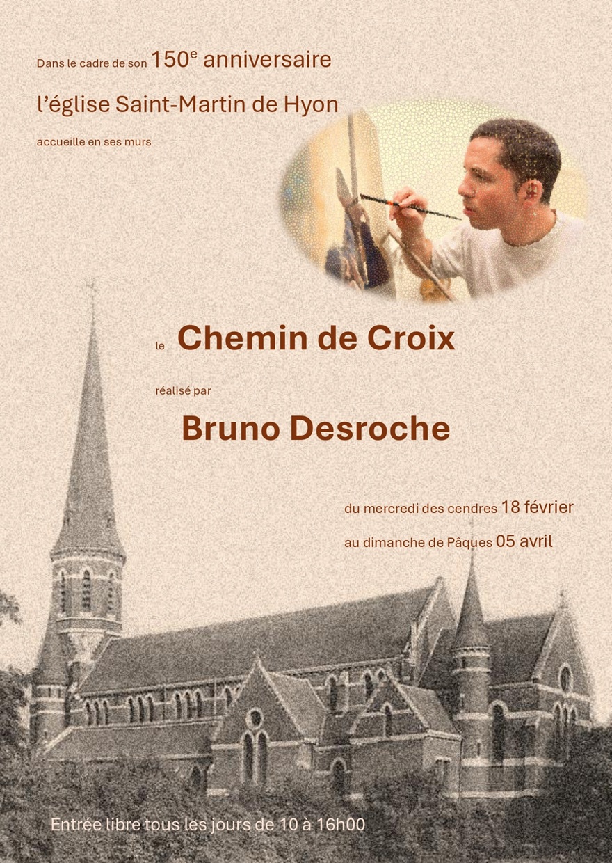Hyon : chemin de croix de Bruno Desroche + Ajouter à mon Agenda Google + iCal / Outlook export Date 18 Fév 2026 - 05 Avr 2026 Ongoing... Heure Toute la journée Lieu Église Saint-Martin (Hyon) UP de Mons Catégorie Exposition Partagez cet événement